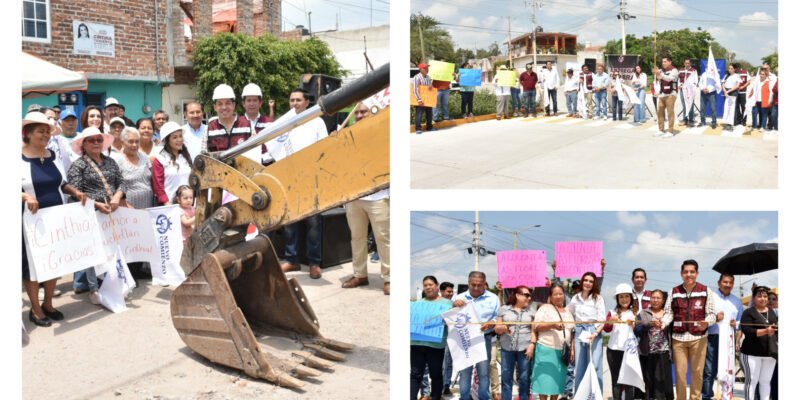 Villagrán, Gto. Julio 14.- La presidenta Cinthia Teniente inauguró hoy obras en la calle Álvaro Obregón, mejor conocida como “La Mezquitada”, pero también, hizo el arranque de otras en diferentes partes del municipio, con las que se cubrirán necesidades prioritarias y para ello, se aplicarán más de 15 millones de pesos.