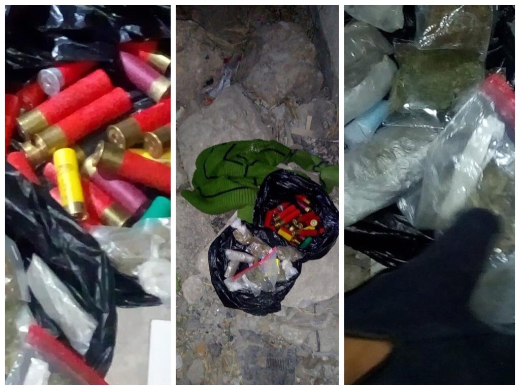 Los hechos ocurrieron cuando elementos de la policía realizaban un recorrido de seguridad, sobre las calles Naranjo y Pino, lugar en el que visualizan a varios sujetos, quienes al notar la presencia de la policía, huyen sin poderles dar alcance, dejando en el lugar una bolsa negra, la cual a ser revisada se localizaron 11 bolsas pequeñas con características de droga y cartuchos útiles de escopeta.