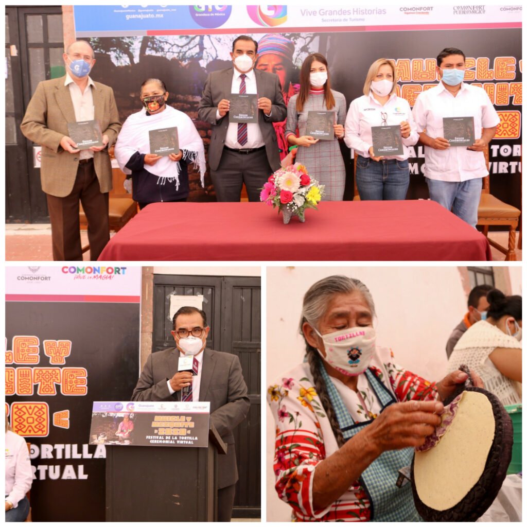 Comonfort, Guanajuato, a 17 de octubre de 2020. Con la presentación del catálogo documental de los Sellos Ceremoniales y adaptado a la modalidad virtual, dieron inicio las actividades del Festival de la Tortilla Ceremonial “Muicle y Mezquite 2020”.