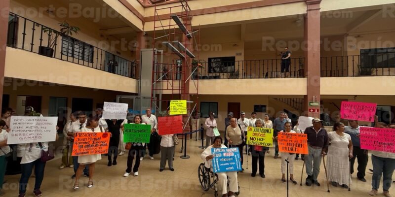 Celaya, Gto; Un grupo de integrantes de la Asociación de Jubilados y Pensionados de Celaya se manifestó este lunes en el patio de la presidencia municipal, luego de que les fuera retirada la prestación conocida como “fondo de ahorro” que recibían más de 220 ex trabajadores municipales, a partir de la pasada catorcena.