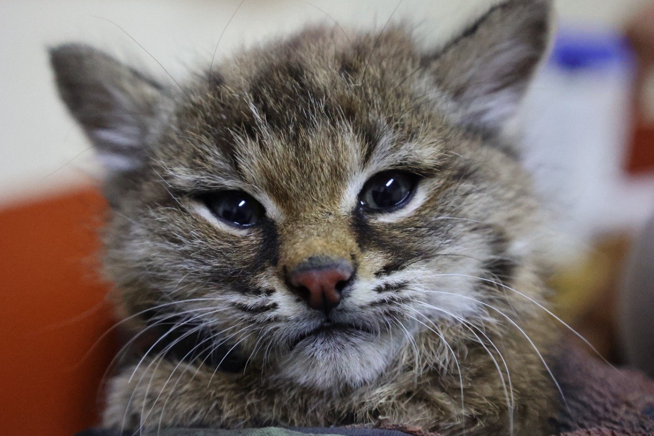 La pequeña lince de color café, en primera revisión, se aprecia alerta y despierta, con la característica de que no es animal doméstico, razón por la que es resguardada en espacio especial para ella en tanto recibe su revisión completa y cuidados como parte de las especies nativas de Purísima del Rincón.