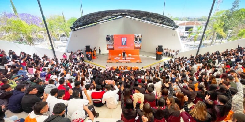 El alcalde Mauricio Estefanía junto a Yareli Zamudio en representación de Juventudes Guanajuato, además del presidente del Instituto de Certificación Empresarial de México, Christian Ríos, Francisco Morales titular de la comisión de derechos humanos y el director del CBTIS 172 Pedro González encabezaron este evento que pretende darle una perspectiva clara a los jóvenes para elegir su futuro.