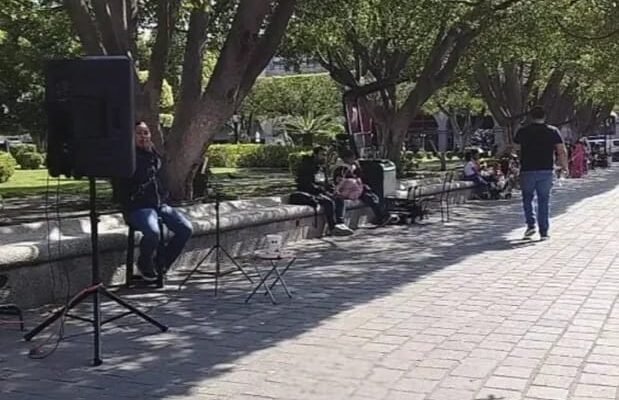 Celaya; Gto.- Músicos que invaden el Jardín Principal con bocinas en alto volumen, quitan la tranquilidad a los visitantes, sin embargo, no hay dependencia del Gobierno Municipal que pueda normales, bajo la justificante que se trata de un espacio público y tampoco ejercen algún tipo de comercio y reciben dinero que entregan las personas de forma voluntaria.