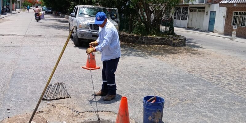 Villagrán, Gto. Mayo 29.- Para prevenir las inundaciones durante la temporada de lluvias, el organismo operador del agua potable realiza el desazolve de alcantarillas en todas las colonias de la cabecera municipal, en cumplimiento a las instrucciones de la presidenta Cinthia Teniente.