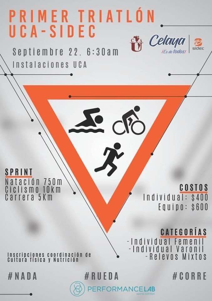 Para el domingo, se llevará a cabo el triatlón UCA-SIDEC, siendo las modalidades: natación 750 metros, ciclismo 10K y carrera 5K, esto en las categorías Individual Femenil, Individual Varonil y Relevos Mixtos.