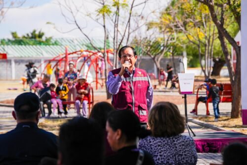Juan Miguel Ramírez, presidente municipal de Celaya, acompañado por Rosalba Cruz Rojas, enlace de la Secretaría de Gobernación, encabezaron el evento de entrega de este espacio público que ahora cuenta con iluminación suficiente, juegos infantiles dignos, bancas para el descanso, así como una trota pista.