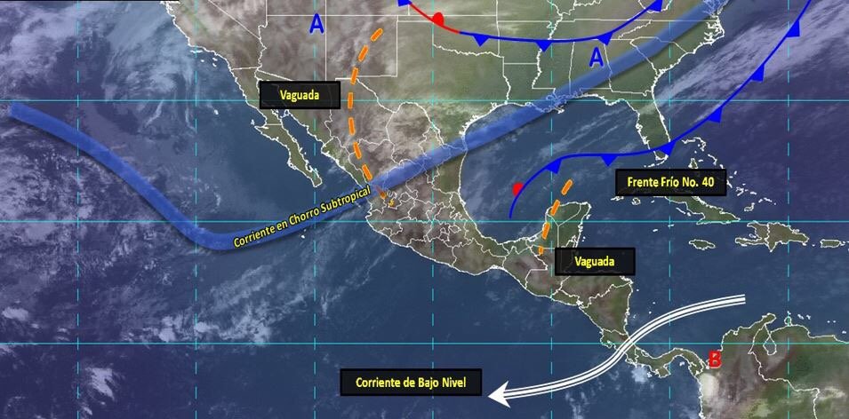 De acuerdo al reporte hidrometeorológico de la Comisión Nacional del Agua (CONAGUA) este día el frente frío número 40 se mantiene estacionario sobre el Golfo de México, así como condición de nublados con lluvia en el oriente, centro y sureste de la República. La masa de aire frío asociada mantiene ambiente frío y posibles heladas matutinas en el noroeste, con bancos de niebla en estados de la Mesa del Norte. Además, evento “Norte” con rachas fuertes en costas del Istmo y Golfo de Tehuantepec.