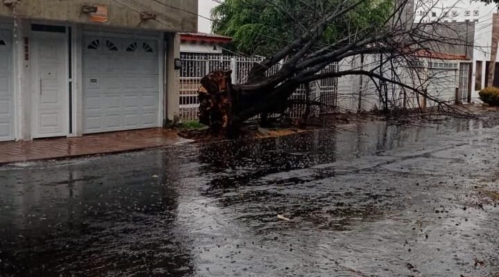 Sobre el bulevar, también se registraron caídas de árboles, pero sobre algunos autos estacionados, a uno le rompió el medallón, mientras que la gente se guarecía bajo techo y ver la caída del granizo, la lluvia y cuando el fuerte viento hizo caer los añejos álamos plateados, algunos ya secos.