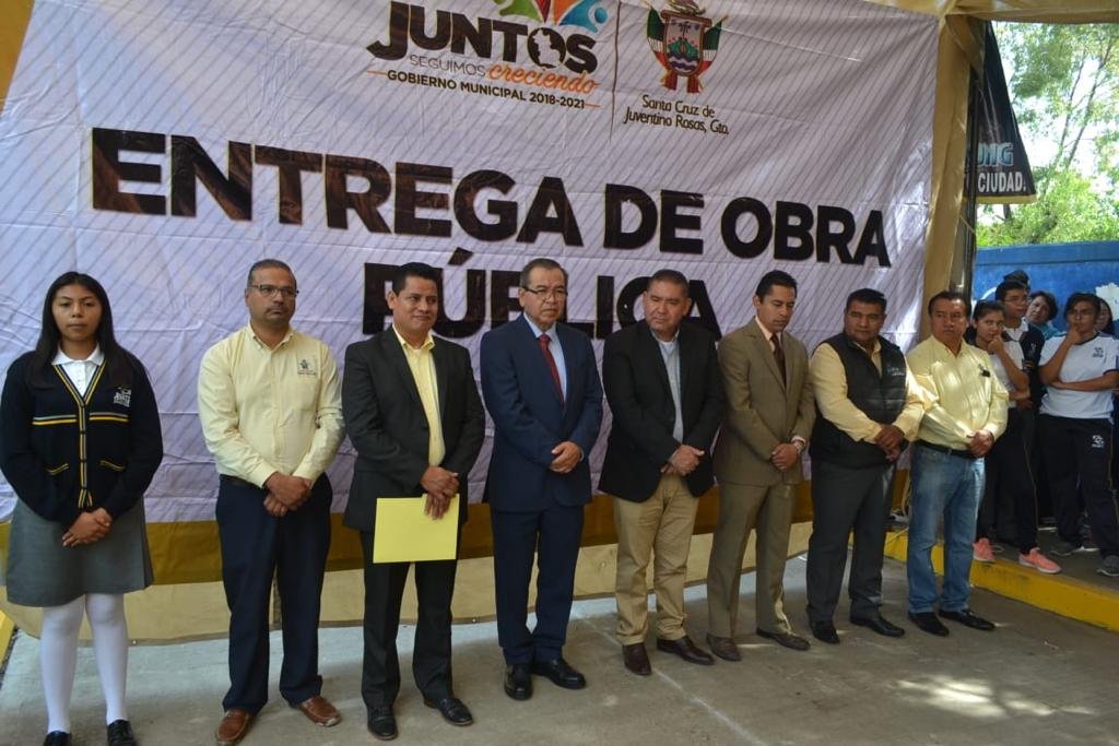 JUVENTINO ROSAS, GTO; El alcalde Serafín Prieto, integrantes del Ayuntamiento, funcionarios de la Administración y representantes del Sector Educativo, entregó obras de urbanización de la calle de acceso al Plantel CBTis 238.