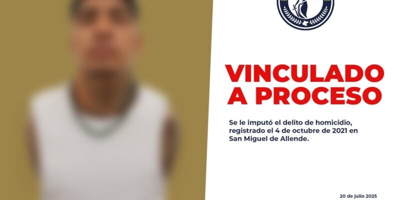 La Fiscalía General del Estado de Guanajuato logró la vinculación a proceso penal de Germán “N”, alias “El Bebé”, por su probable participación en el delito de homicidio, ocurrido en la ciudad de San Miguel de Allende.